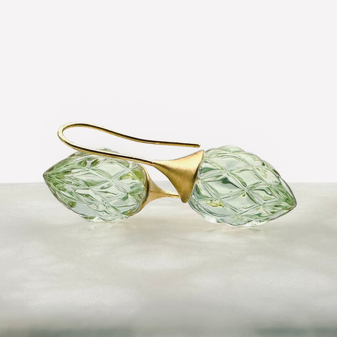 Green Amethyst Earrings / Gold