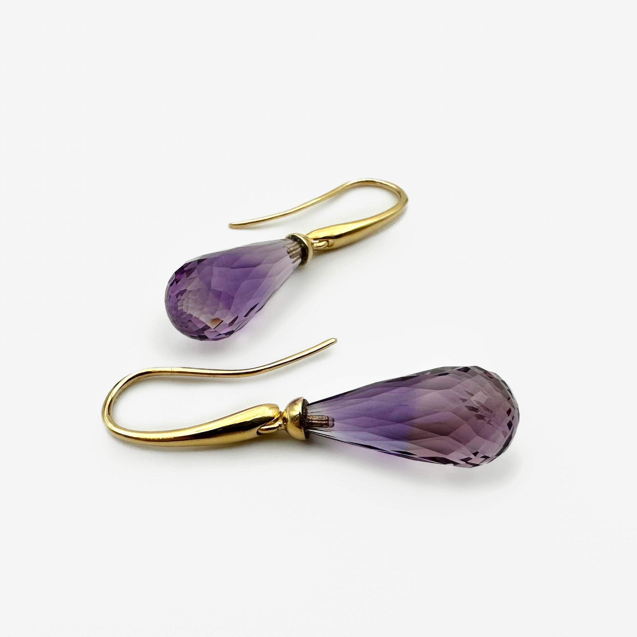 These stunning earrings showcase faceted pear-shaped Amethyst stones set in 9K gold. Each gemstone reveals beautiful variations of purple hues, adding depth, sparkle, and sophistication to every pair.