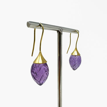 Elegant pointy shaped Amethyst earrings set in 18K Gold.